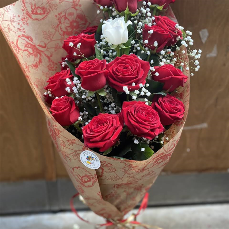 Bouquet di rose rosse e 1 bianca al centro